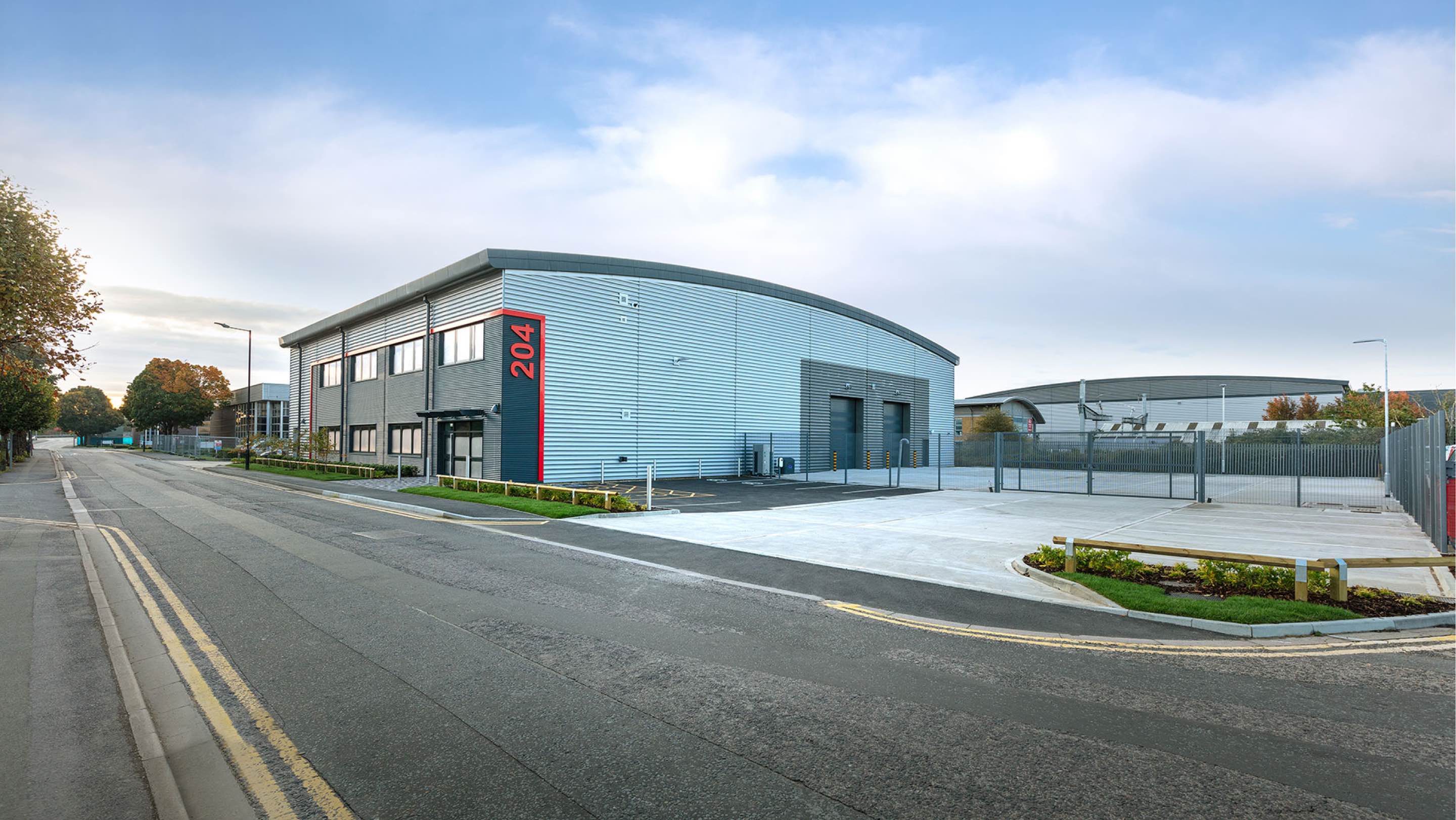 For refurbishments that are termed “substantial” (i.e. more than 50% of replacement costs): they must feature an element of SEGRO Red on the exterior of the building, in addition to the “SEGRO” or “O”. All properties differ, so there is no definitive guide as to specifically what the red element should consist of but, as a rule of thumb, the bigger the property, the greater the amount of red. As a guide there must be sufficient SEGRO Red colour (see definitions below – point 10) to be visible from 50m but no less than 5% and, preferably, 10% of any single facade should feature SEGRO Red.*