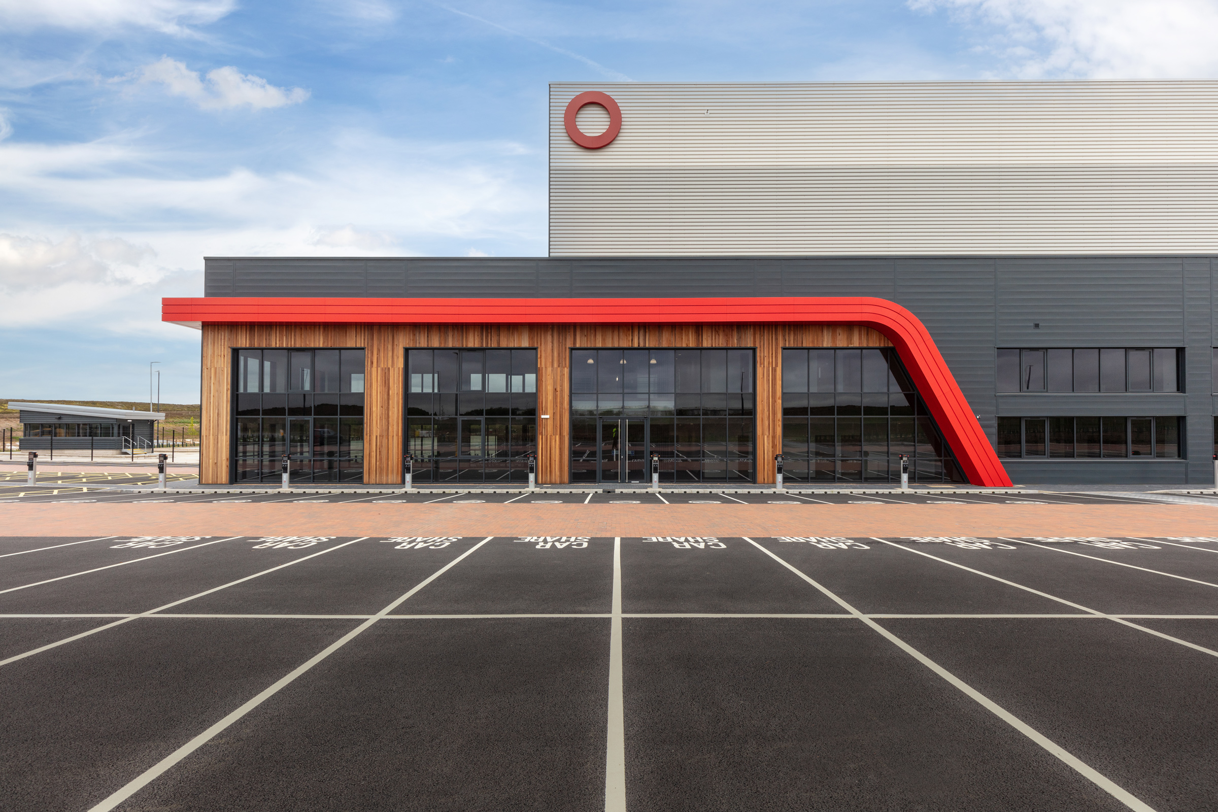 For refurbishments to new acquisitions that are termed “substantial” (i.e. more than 50% of replacement costs): they must feature an element of SEGRO Red on the exterior of the building, in addition to the “SEGRO” or “O”. All properties differ, so there is no definitive guide as to specifically what the red element should consist of but, as a rule of thumb, the bigger the property, the greater the amount of red. As a guide there must be sufficient SEGRO red colour (see definitions below – point 10) to be visible from 50m but no less than 5% and, preferably, 10% of any single facade should feature SEGRO red.*